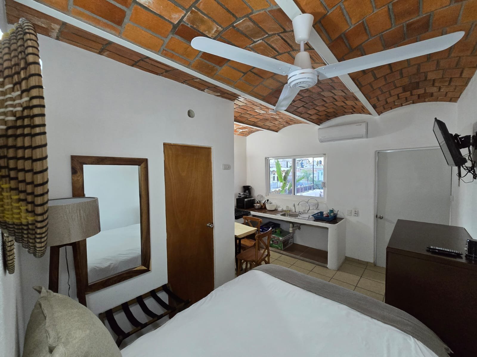 Studio with a full size bed.